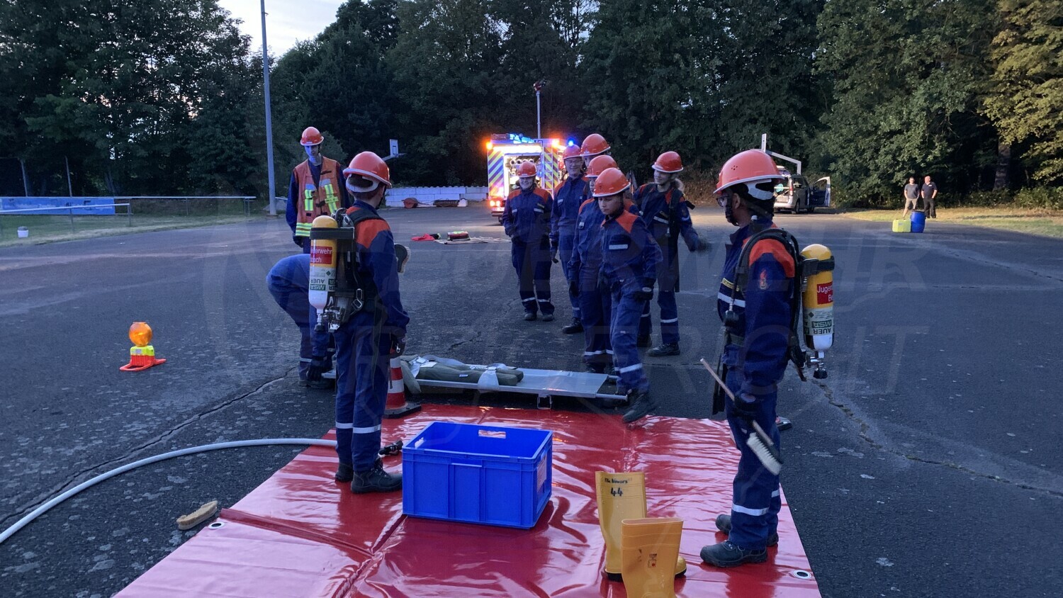 Wie ein erwachsener Feuerwehrmann werden die Jugendlichen zu ihren Fahrzeugen alarmiert. Auch am späten Abend sorgt eine vermisste Person für große Aufregung. Mittels Wärmebildkamera und Suchtrupps wurde nach der vermissten Person gesucht. Nachdem die Person endlich gefunden wurde, konnten sich die Jugendlichen auf die Nachtruhe vorbereiten, ehe die Gruppe morgens nach dem Frühstück zum nächstes Einsatz ausrückte.